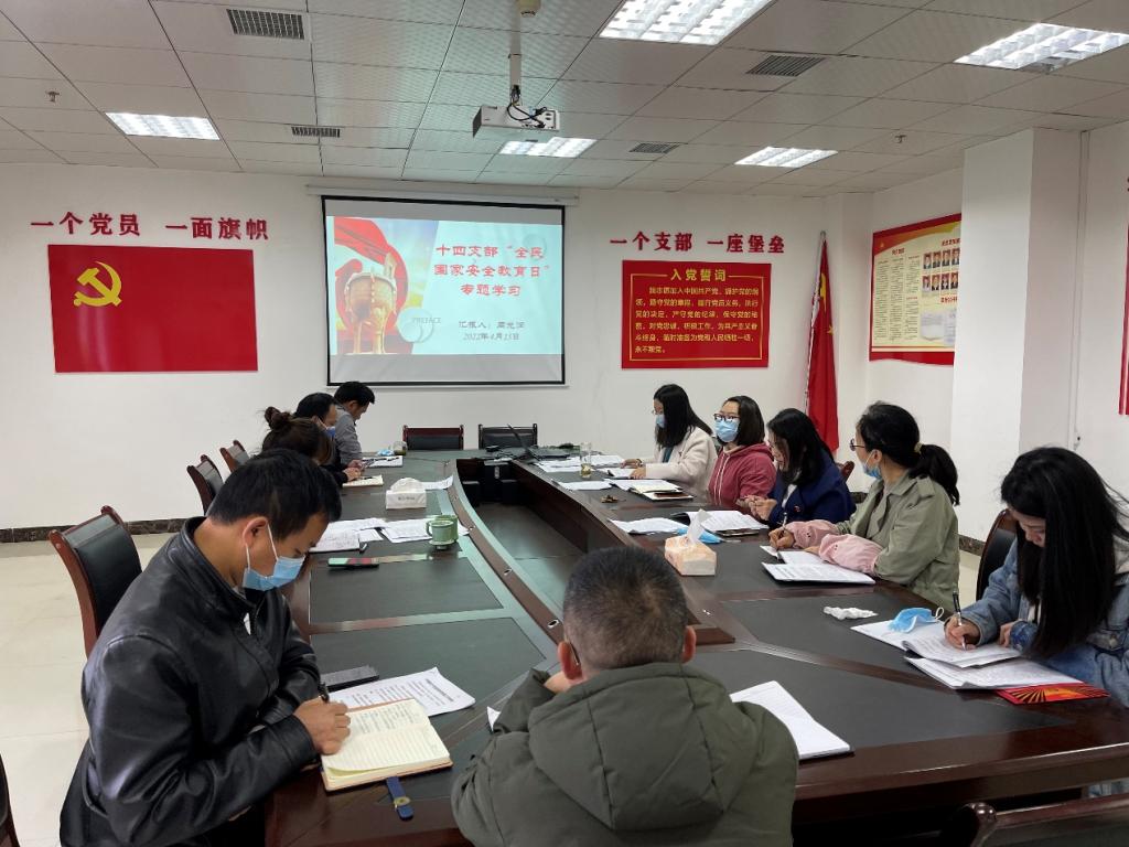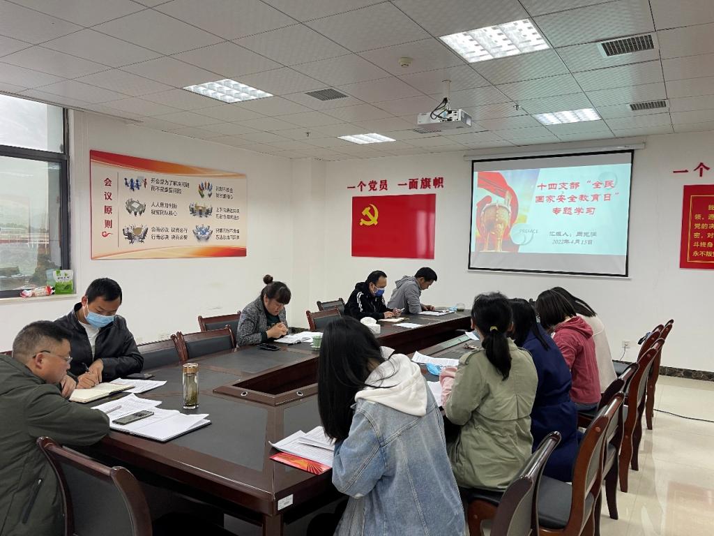 4月15日上午10:30,机关第十四党支部在行政楼501党员活动室开展全民国家安全教育日专题学习。支部全体党员及所属部门非党员同志参会,会议由支部书记周光润主持。