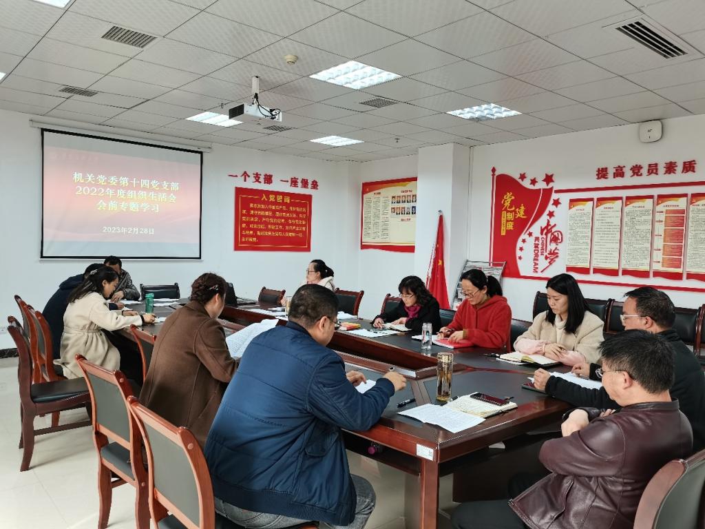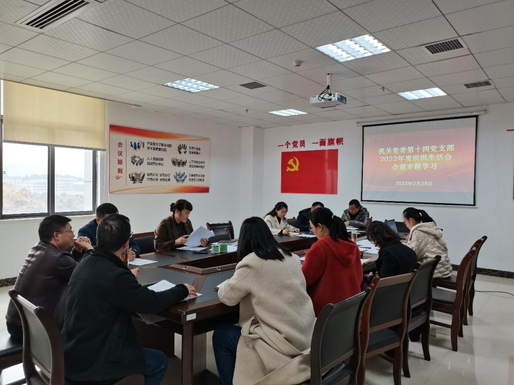 2月28日下午3点,机关第十四党支部在新蒲校区行政楼501党员活动室,开展2022年度组织生活会会前集中学习,会议由支部书记周光润主持,支部全体党员参加。