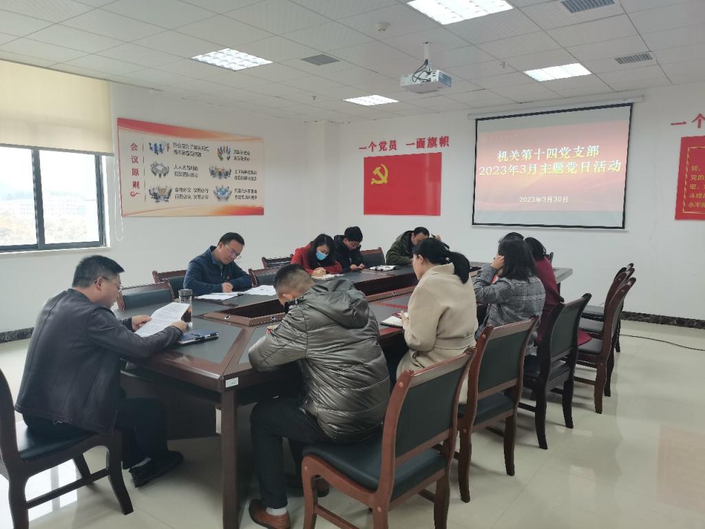 3月30日下午2:30,机关第十四党支部在新蒲校区行政楼501党员活动室开展“普法宣传·党员先行”主题党日活动,支部全体党员及所属部门非党员参加,活动由支部书记罗世强主持。