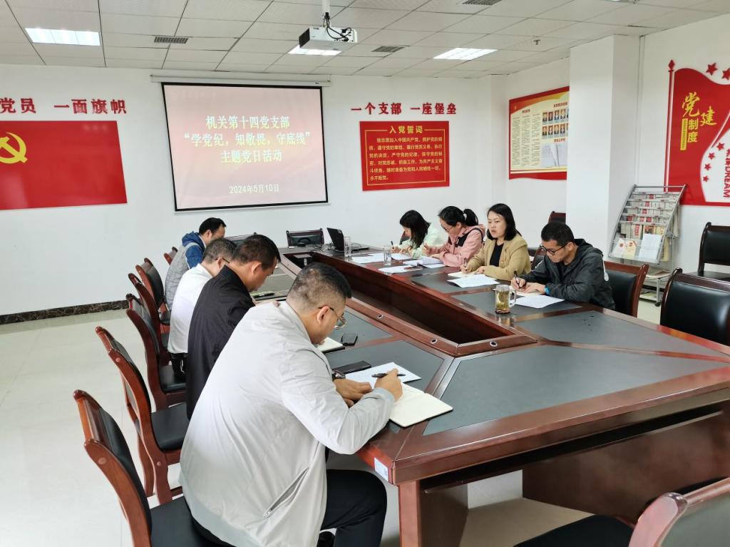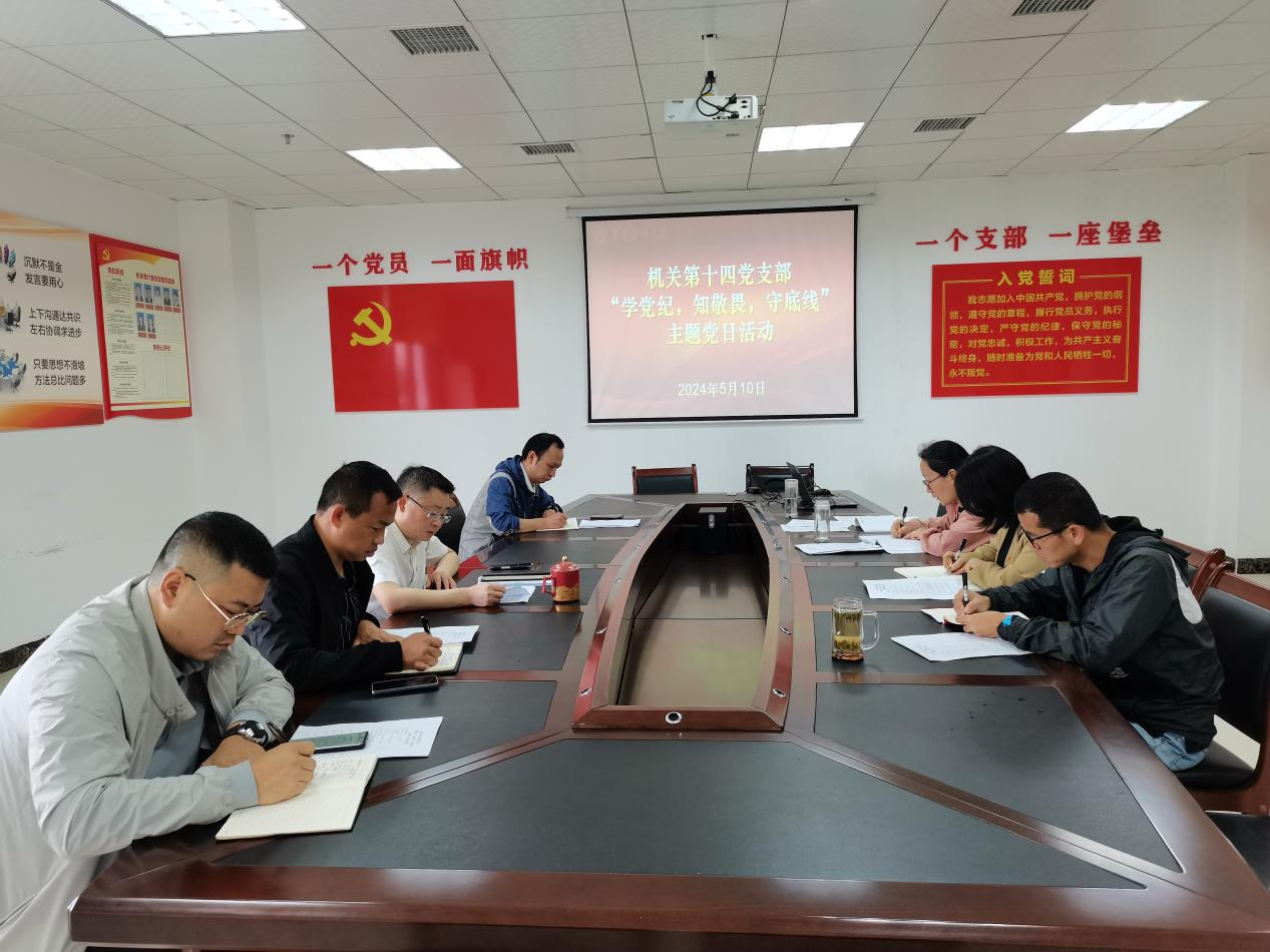 5月10日上午,机关第十四党支部在行政楼501党员活动室开展“学党纪,知敬畏,守底线”主题党日活动,支部全体党员同志参会,会议由支部书记罗世强主持。