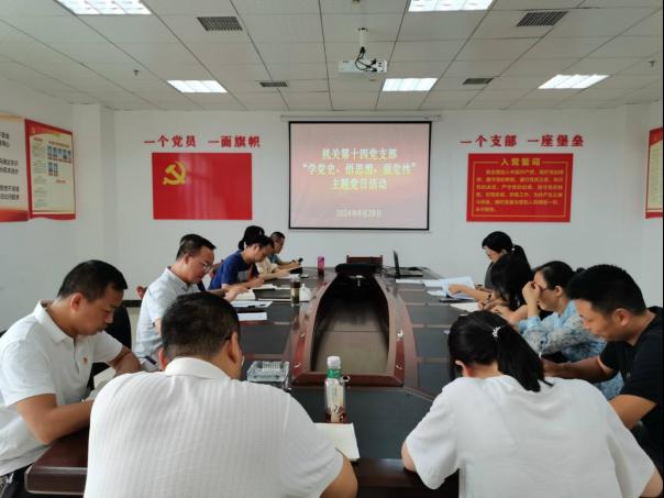 8月29日下午,机关第十四党支部在行政楼501党员活动室,开展“学党史、悟思想、强党性”主题党日活动,支部全体党员同志参会,会议由支部书记罗世强主持。